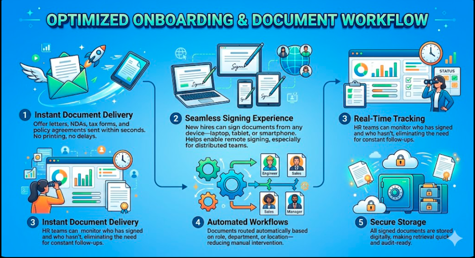 They automate document workflows, reduce manual tasks, and speed up the signing process, resulting in faster and more efficient onboarding.